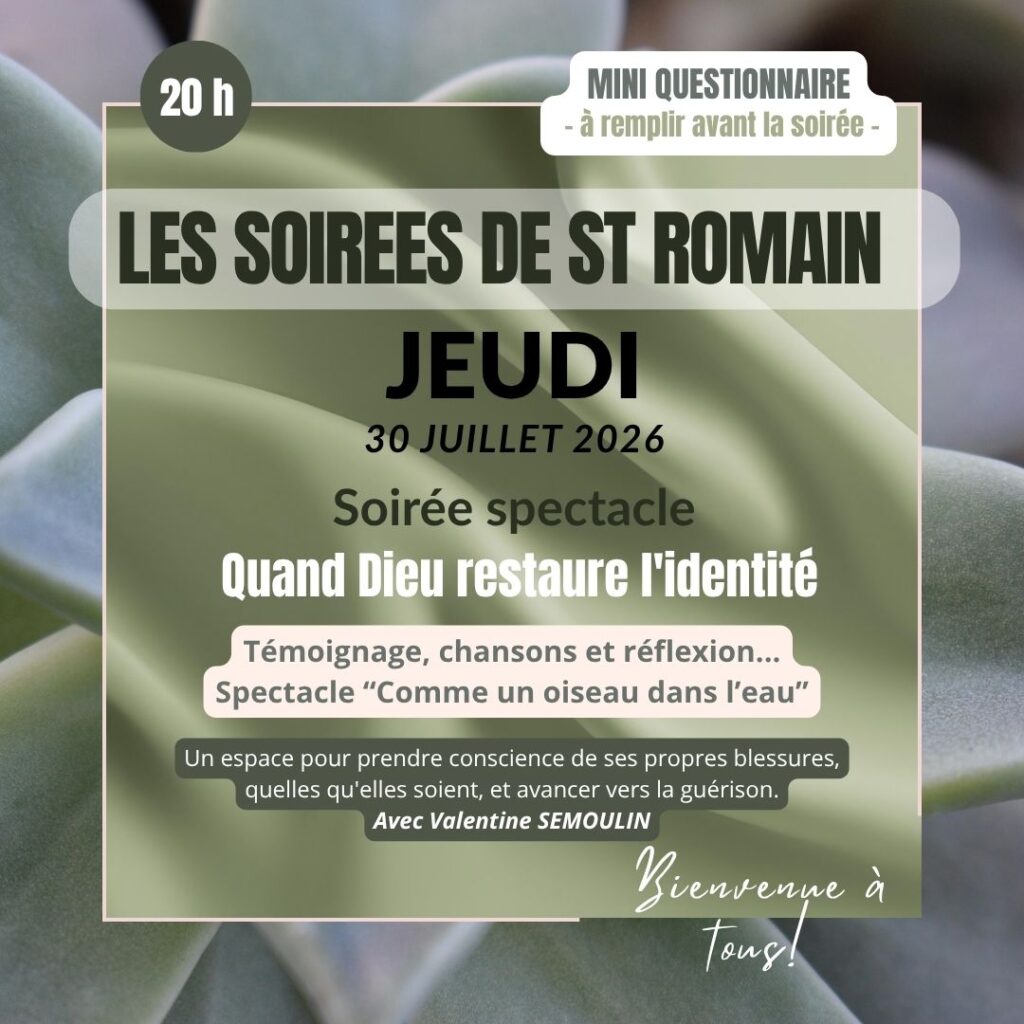 ► JEUDI – 20 h : Soirée spectacle « Comme un oiseau dans l’eau »